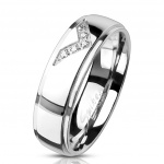 Bague couple en acier avec bandeau à hélices et pierre claire