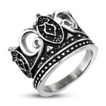 Les croix fleurdelisées, caractérisées par leurs extrémités en forme de lys, ajoutent une profondeur visuelle et un charme vintage qui complètent parfaitement les têtes de mort. Le souci du détail dans chaque élément en relief et l'accent mis sur la polissage des zones brillantes et des creux plus sombres renforcent encore le caractère affirmé et unique de cette bague. L'éclat métallique de l'acier inoxydable enrichit les reliefs et souligne la dimension visuelle des motifs.