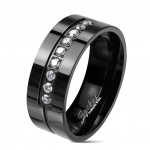 Le design moderne et minimaliste de cette bague est souligné par une largeur de bandeau conséquente et une finition lisse qui assure un port confortable au quotidien. La gravure intérieure discrète, en police linéaire, apporte une touche personnelle unique à cette pièce d'exception, tandis que le sertissage de pierre de synthèse, bien que non visible sur l'image, ajoute une note sophistiquée à l'ensemble.
