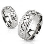 Le design de cette bague, orné de multiples motifs en relief, présente une série de têtes de morts stylisées. Chaque crâne, avec ses orbites et narines exagérées, crée un effet dramatique et captivant. Entre chaque tête de mort, des espaces vides mettent en valeur individuellement chaque motif, renforçant le détail et la minutie de l'ouvrage. Ce choix audacieux de décoration confère à l'anneau un style gothique ou rocker, destiné aux hommes appréciant les bijoux au design provocant et original.