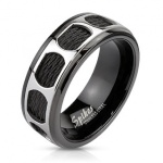 Bague homme en acier avec rectangle de pierres claires bordé de pierres noires