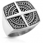 Bague homme en acier noir avec chaine de croix gravée au laser