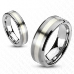 L'intérieur de la bague, contrastant avec l'extérieur mat, est d'un noir brillant et poli, où l'inscription "TUNGSTEN CARBIDE" se fait remarquer par la réflexion de la lumière. Ce subtil détail souligne à la fois la qualité du matériau et l'authenticité de la finition. La combinaison de ces éléments crée un objet design à la fois minimaliste et distinctif, parfait pour l'homme contemporain en quête de style et d'exclusivité.