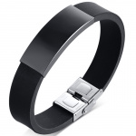Bracelet homme noir tresse similicuir à plaque