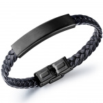 Bracelet homme similicuir tresse double tour (noir ou rouge)