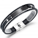Bracelet homme tresse similicuir à plaque noire courbée