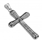 Au centre du pendentif, un strass en zirconium est incrusté, apportant une touche de brillance subtile qui contraste magnifiquement avec les tons sombres du métal. Lisse au toucher, la surface du pendentif reflète la lumière, accentuant sa forme à la fois sculpturale et raffinée. La structure audacieuse de ce bijou est équilibrée par des espaces ouverts qui allègent visuellement sa présence tout en laissant transparaître subtilement le fond, ajoutant une dimension supplémentaire à son design.